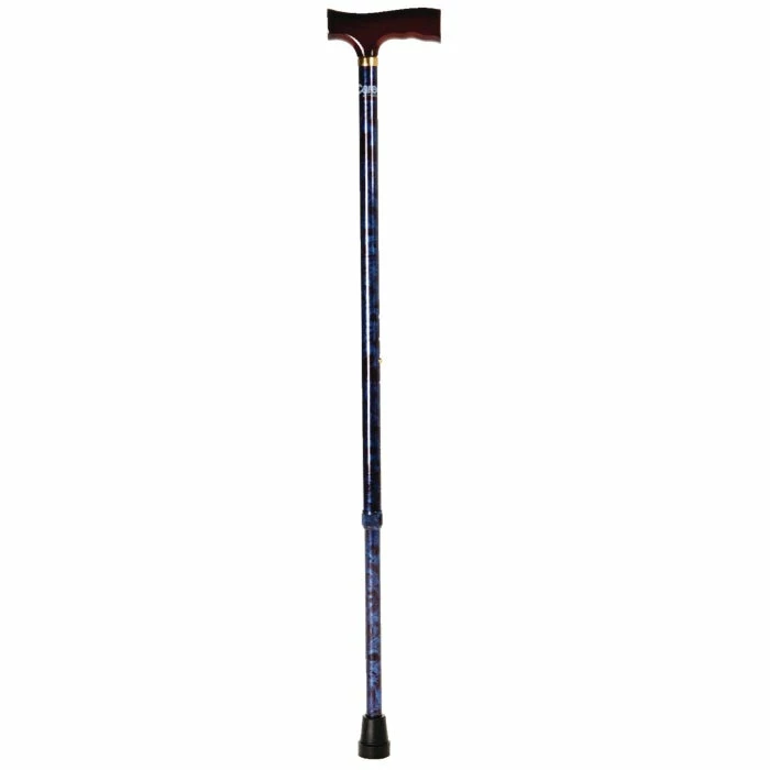 The Adjustable Derby Folding Cane is lightweight, adjusts in height from 33″ to 37″, and features a weight capacity of 250 lbs. The cane folds in three places and includes a clear travel case, making it easy to transport and store.
