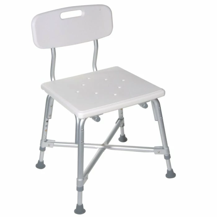 The Bariatric Bath Seat with Brace helps those who struggle to bathe on their own and has advantages for their caretakers. It has width and depth cross braces attached to the frame with aircraft-type rivets. The seat is made of plastic that is moldable for comfort.