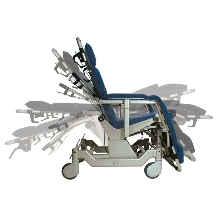- Features fully adjustable headrest, footrest, armrests and side supports with specialized padding to prevent pressure ulcers and skin breakdown
