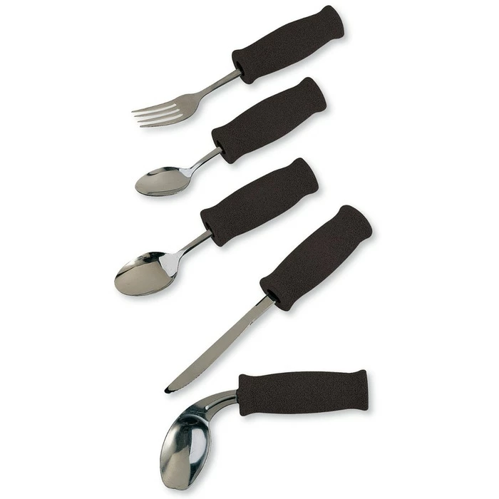 - Cushioned with soft closed-cell foam, the built-up handles help improve mealtime independence by making it easier to securely grasp and manipulate utensils