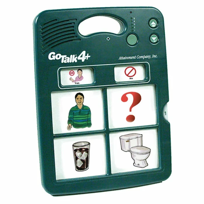 The Go Talk 4+ assistive speech and communication device is the perfect product for individuals who struggle with their speech and need to give basic level commands. The device provides up to 20 messages and 5 recording levels. Each key on the device is large and easy to see and read. The Go Talk 4+ has an overall recording time of 4.56 minutes with an easy to use sequential recording option. Two AA batteries included.