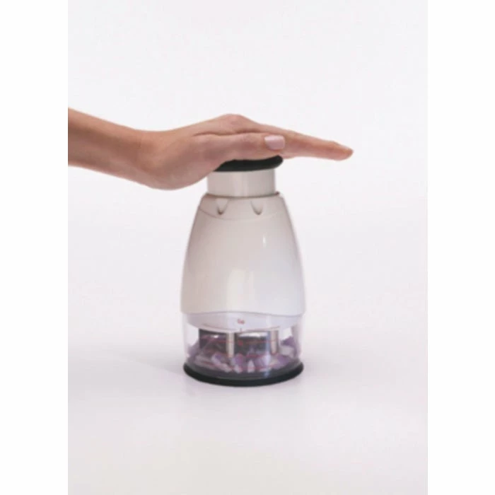 The Good Grips Deluxe Chopper is great for almost anything that needs to be diced. Simply press down the soft knob on top and the chopper does all the work. It even rotates internally so you don’t have to change positions. The internal soft bumper absorbs all the shock while a tab circulates on the inside to prevent food from sticking to the wall. The blade cartridge is removable for easy cleaning and reassembly. There are measurements on the clear cup, which can also be used for storage (lid included).