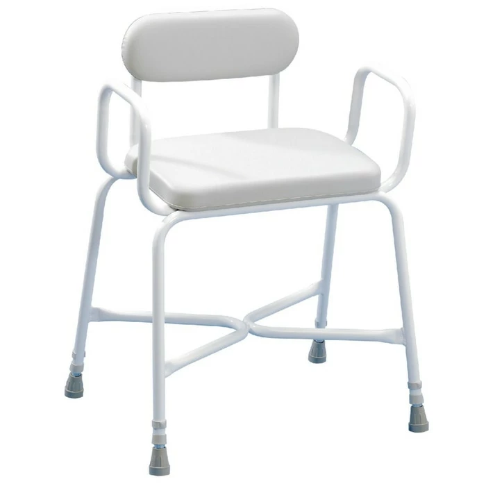 - The perching stool enables the user to ‘semi-sit’, reducing the strain from either standing for long periods or from getting up and down from full seating positions