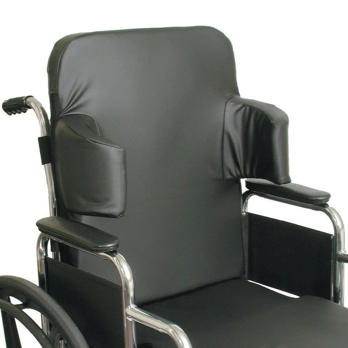 - Tall back offers head support and requires anti-tipper bars on wheelchairs