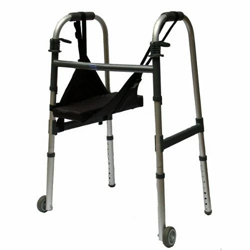 The lightweight Knee Sling weighs less than 3 lbs and easily adjusts to accommodate any height. It comes fully assembled and requires no tools or hardware to attach to the walker. The removable sling can be used on either side of the walker, for the left or the right leg. The Knee Sling is water resistant to make cleaning easy and folds for quick storage.