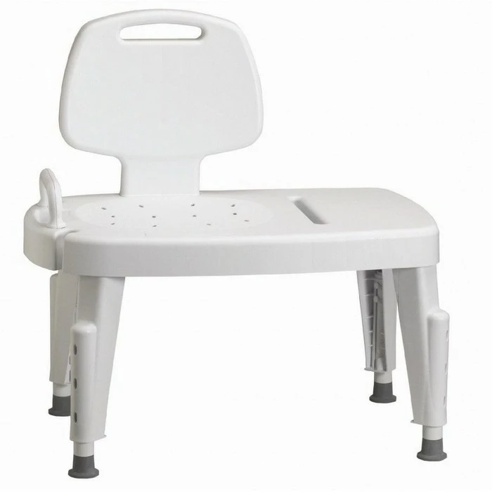 Maddak Adjustable Transfer Bench provides easier access for people who have difficulty getting in and out of the shower. The transfer bench features removable back and arm, built-in hand held shower holder and suction feet.
