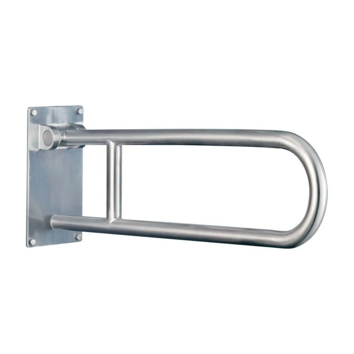 The grab bar is made of heavy-duty stainless steel to provide maximum support. It features a unique design that can be flipped down when in use and back up for storage. The bath grip provides lasting performance and has a weight capacity of 300 lbs.