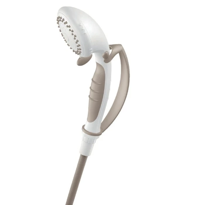 - Extra-long 84″ flex-soft hose allows for seating or standing showers
