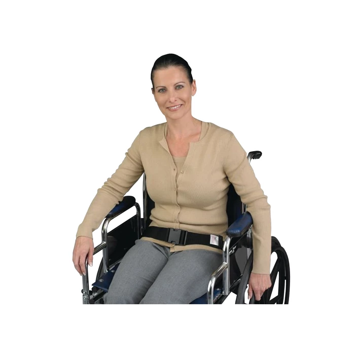 The Sammons Preston Adjustable Two Piece Belt with Side Release Buckle is designed to prevent slipping and falling from the wheelchair. The belt adjusts to fit any user. The long webbing belt has anchor plates to easily and securely attach the belt to the wheelchair.