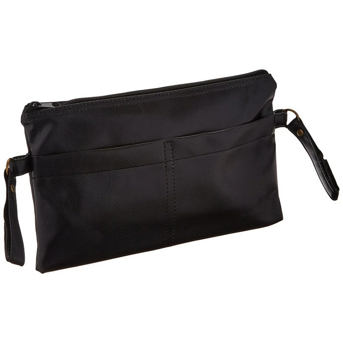The Sammons Preston Side Pouch for Wheelchairs is fastens to a wheelchair arm with two straps. It provides a convenient way carry personal items when using a wheelchair. The black vinyl is easy to clean.