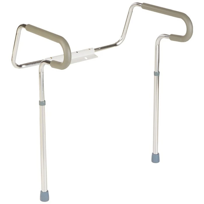 The Toilet Safety Frame adjusts in both height and width to fit most standard sized toilets. Equipped with cantilevered arms that are covered with closed cell foam padding designed to give a non-slip grip and provide extra comfort.
