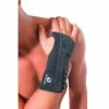 Individually contoured finger rests and a molded-in hook and loop adjustable strap keep cone in place without slipping. The firm rubber construction does not stimulate finger flexion spasticity. Latex free.