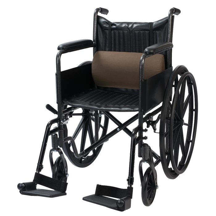 The Wheelchair Back Support is made of quick-recovery foam and covered with durable, stain-resistant fabric. The adjustable elastic straps secure the support to any wheelchair. It’s supportive, comfortable, and made with latex-free material.